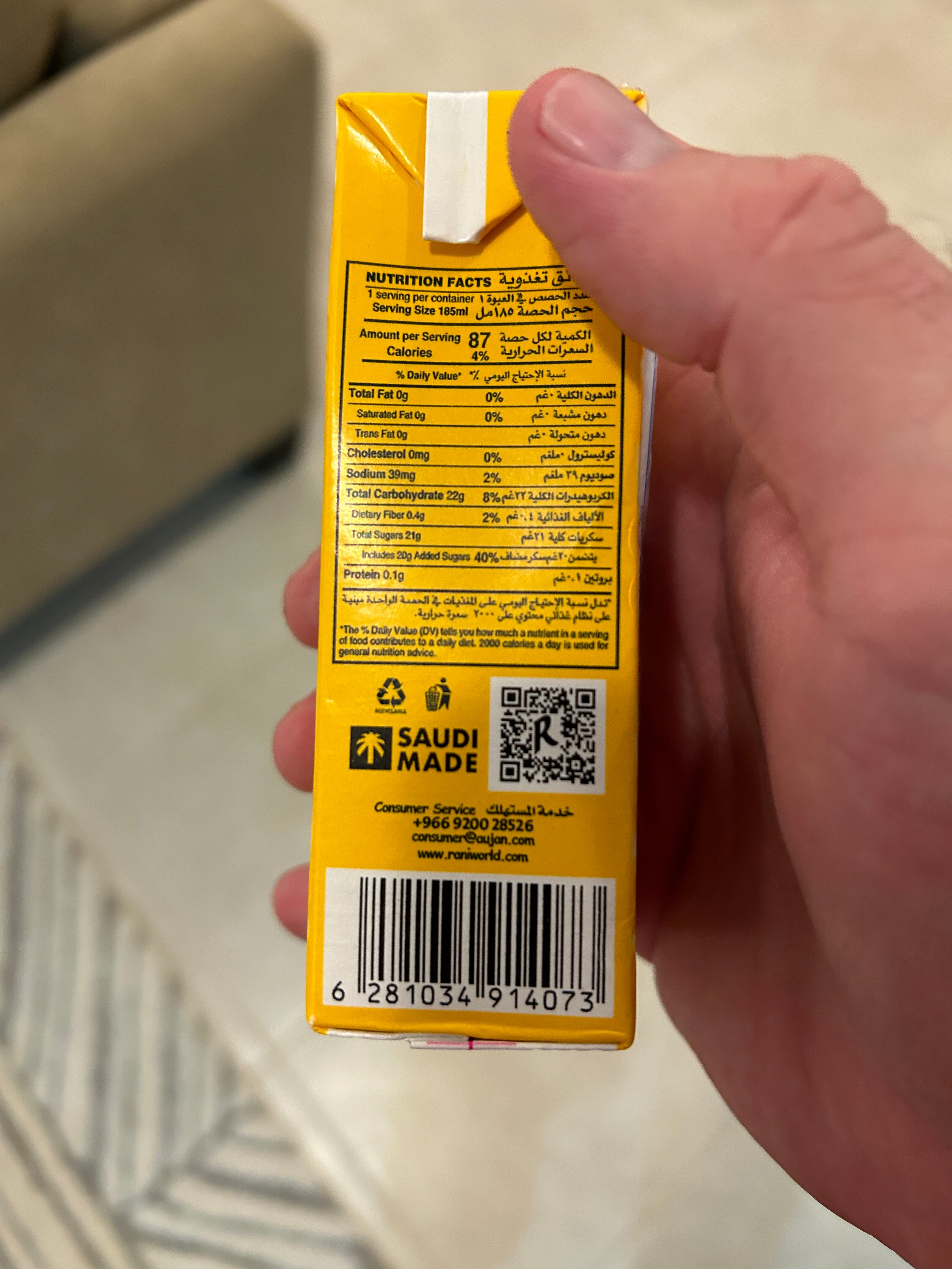 There’s a lot behind why Kinza is available here. First, I suspect a lot has to do with the informal but very real boycott of Israel-affiliated brands (and an “affiliation” can be at times very tenuous—see this Reddit thread), especially since the beginning of Israel’s operations in Gaza. Second, remember that this is a Saudi soft drink being sold in a country that Saudi Arabia blockaded not ten years ago (it’s Qatar’s only neighbor, thanks in part to KSA’s actions in the early 1990s, which involved deadly armed clashes).