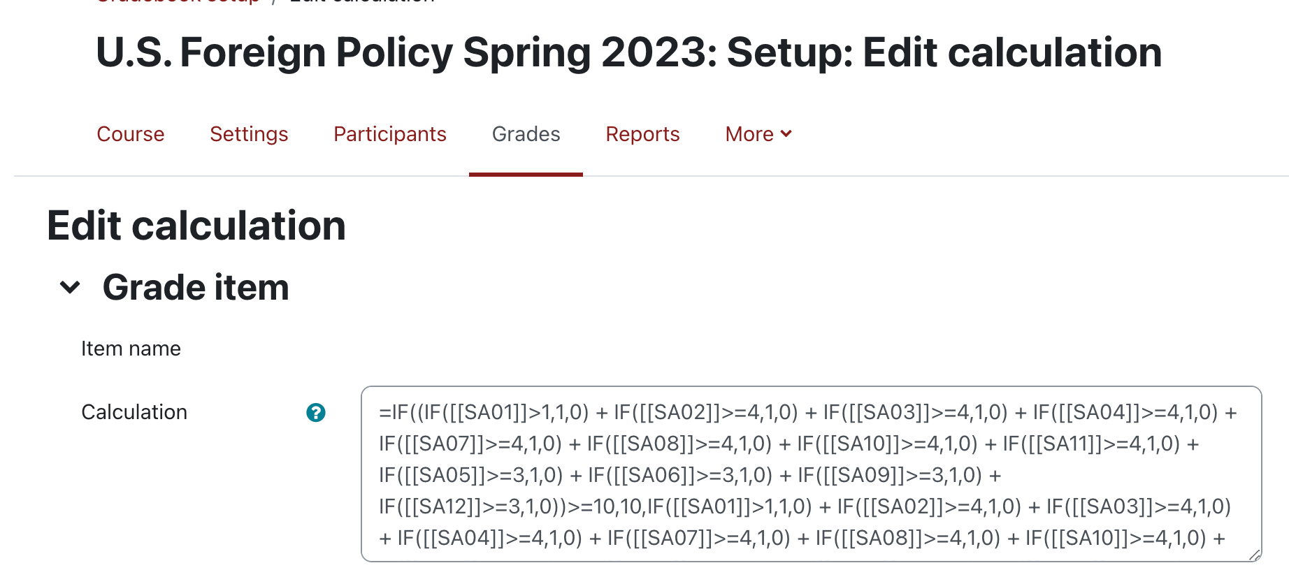 There’s only one problem. Mostly LMSes suck. Really. They are all awkward fits. I know for a fact that many of the firms that make them (and these are multibillion-dollar companies) hire a lot of people with classroom experience, but the LMSes all still end up with the overall aesthetics and user experience of the Homermobile. Many of them are quite ugly. None of them offer the flexibility and ease of Excel formulae when it comes to calculating grades. For instance, here is a real formula I had to create to implement a straightforward course policy.