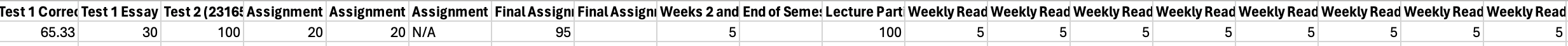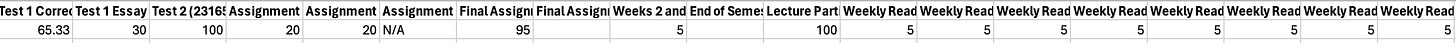 Okay, here’s the thing. Nobody1 designs courses like this anymore. So instead gradebooks look like this: