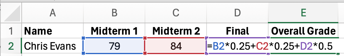 and probably something else, I don’t know. That’s, what, more than 20 columns? That’s one hell of a formula. And when you have one hell of a formula, you know what happens? You make errors. Hundreds of millions of dollars have been lost because of Excel errors. I’m not going to make a hundred-million dollar formula error. But I could screw up grade calculations, and that’s the worst feeling ever.